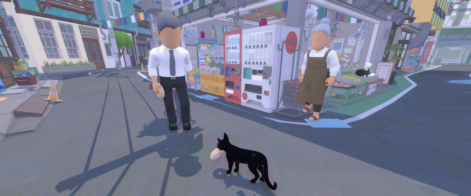 The humans in action in Little Kitty, Big City (Double Dagger Studio). I was only responsible for the human models seen here. As they need to share the same rig, their height and proportions were standardized. I also helped out with the early UI design (not shown)